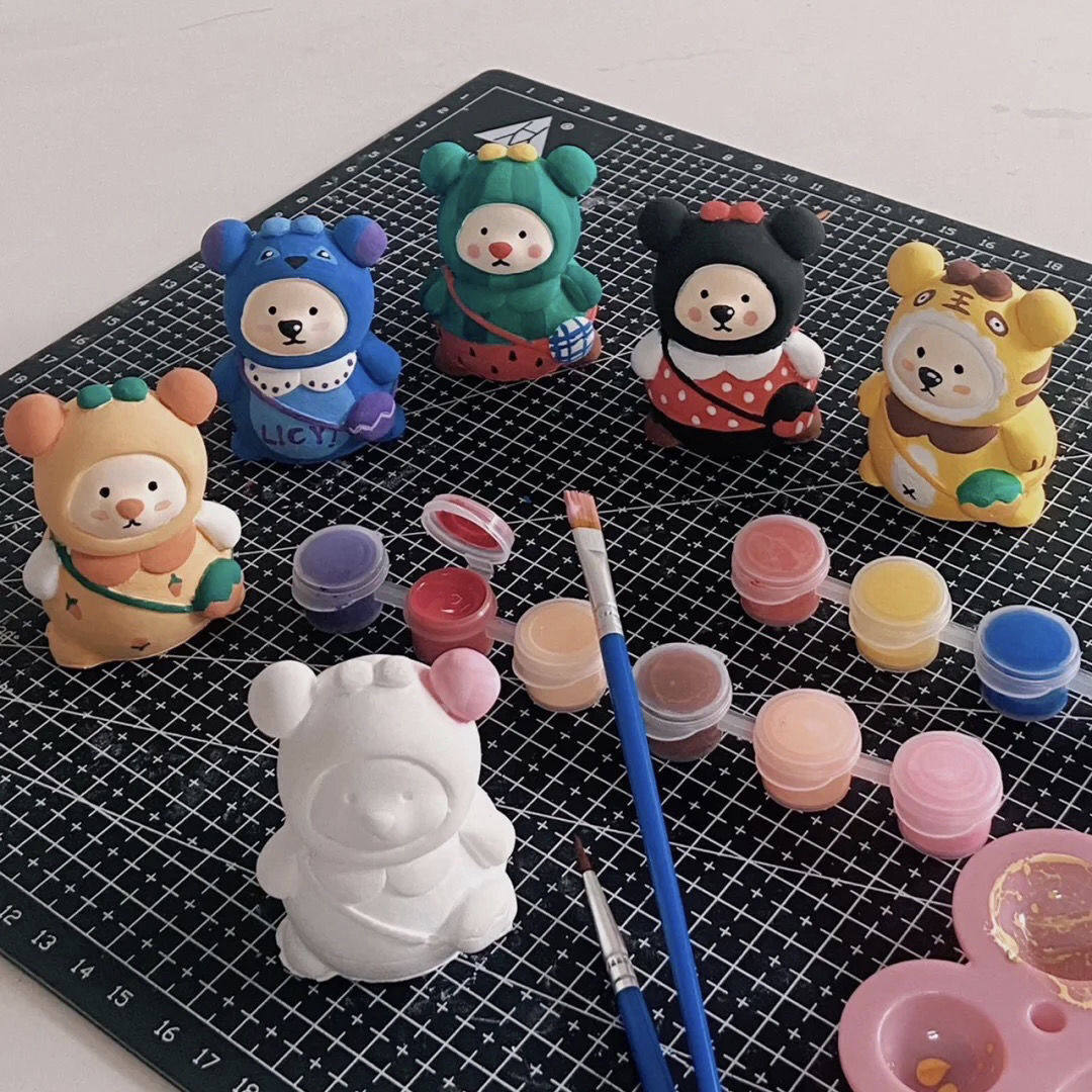 diy石膏娃娃背包熊涂鸦白胚石膏立体小熊涂色模型摆件染色热门设计联盟服务商